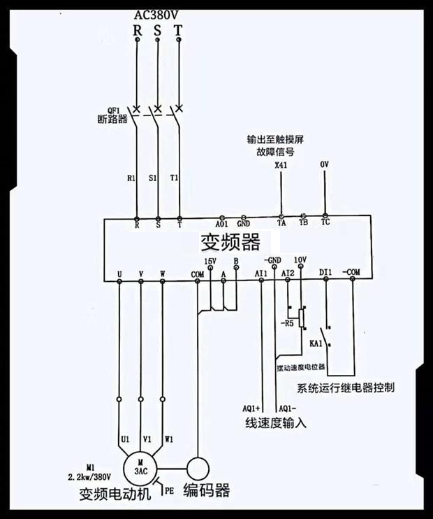 上圖高性能矢量型變頻器的在實(shí)際電路中的應(yīng)用電路圖。上圖中變頻器所驅(qū)動(dòng)的電動(dòng)機(jī),在電動(dòng)機(jī)軸上附加了一個(gè)編碼器來(lái)與電動(dòng)機(jī)同步旋轉(zhuǎn),編碼器此時(shí)可以根據(jù)電機(jī)的速度隨時(shí)隨地采集它的動(dòng)態(tài)速度的情況,及時(shí)反饋給變頻器的PG卡。