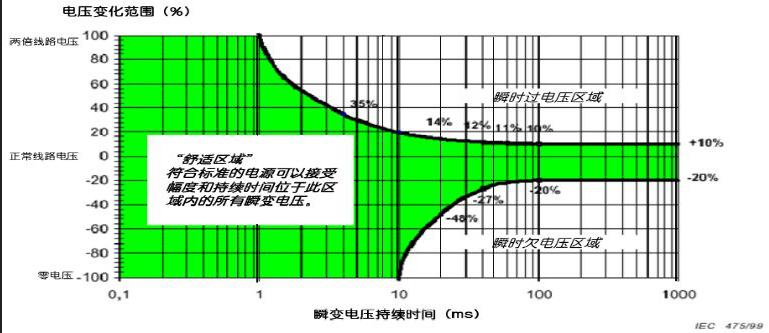 IT負(fù)荷其實(shí)對(duì)交流電的要求不高,允許電壓-20%,+10%,頻率40-70HZ,允許中斷時(shí)間10-20ms。逆變器優(yōu)先模式值得驕傲的1%輸出精度其實(shí)沒(méi)有一點(diǎn)價(jià)值。如圖示
