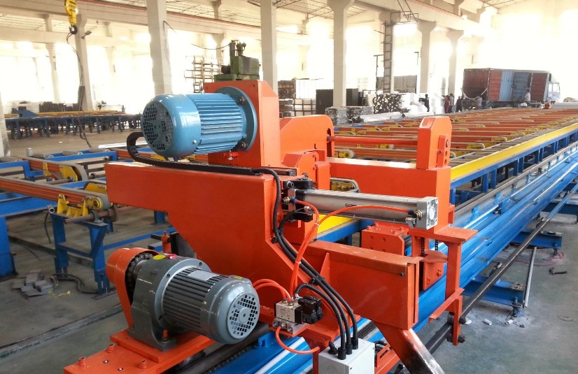 某地一家專業(yè)從事鋁型材加工生產(chǎn)的企業(yè),其生產(chǎn)車間內(nèi)的牽引系統(tǒng)主要是由觸摸屏、PLC與杭州三科的SKI600系列重載變頻器組成。牽引機(jī)作為鋁型材生產(chǎn)中的一種重要設(shè)備,在生產(chǎn)中需要配合擠壓機(jī)的擠出速度將鋁材原料從擠壓機(jī)模具腔中平直地牽引出來。牽引系統(tǒng)采用恒張力控制,以保證型材的直線度,防止型材扭曲,并減少型材表面的損傷,提高型材的成材率和品質(zhì)。