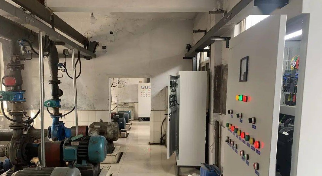 某地電廠的綜合泵房共有9臺水泵,其中有3臺工業(yè)水泵,2臺消防穩(wěn)壓泵,2臺消防泵,2臺生活水泵。而工業(yè)水泵承擔(dān)著我公司兩臺5萬KW汽機(jī),兩臺額定蒸發(fā)量220T/H鍋爐生產(chǎn)用水的供水任務(wù),工業(yè)水泵的型號:250SSK468/54,流量:468m3/h,揚程54米,轉(zhuǎn)速1470 r/min,配用功率110KW;配用電機(jī)型號Y315S-4B3,電壓380V,電流201A,轉(zhuǎn)速1480 r/min.建廠初期由于設(shè)計問題,全部采用工頻運行。為了保證生產(chǎn)的可靠性,各種水泵在設(shè)計配用動力驅(qū)動時,都留有一定的富余量。電機(jī)不能在滿負(fù)荷下運行,除達(dá)到動力驅(qū)動要求外,多余的力矩增加了有功功率的消耗,造成電能的浪費,