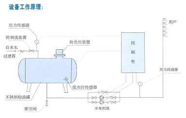2、附加小泵或氣壓罐,為完全消除小流量或零流量供水電耗,可增加輔助小泵或輔助氣壓罐,當供水壓力低時,自動停運主泵,使小泵或氣壓罐運行。