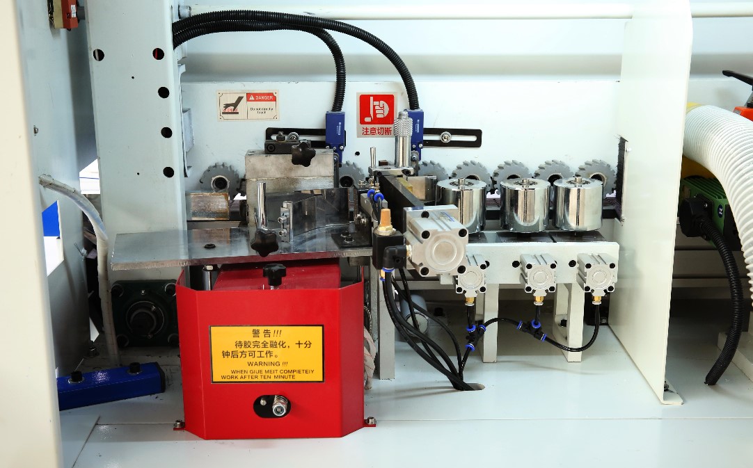 全自動封邊機主要包括機身、各加工部組、控制系統(tǒng)。機身部分由上下橫梁、底座組成,其中機身部分關(guān)系到精確度,上下橫梁,關(guān)系到加工板材能否直線運行,確保每個工位的精密運行。封邊機可分為手動曲線封邊機和全自動直線封邊機兩種。標(biāo)準(zhǔn)機型配置為:只具備齊頭,修邊,刮邊,拋光這四個主要單元。利用感應(yīng)器檢知工件工位從而完成封邊機的輸送--涂膠--切斷--前后齊頭--上下修邊--上下精修--上下刮邊--拋光等封邊工序。用戶可根據(jù)自己的實際情況增加雙修,開槽,仿形等工位。